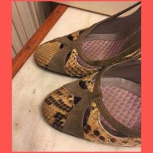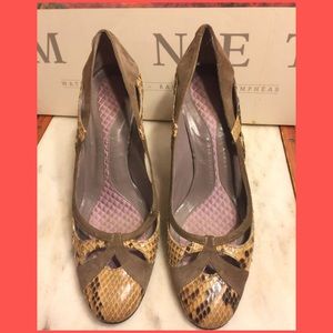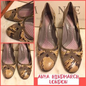 FABULOUS COUTURE ANYA HINDMARCH LONDON TAUPE-BROWN SUEDED ITALIAN LEATHER/TAN/BROWN/BLACK SNAKESKIN 3.5" HEEL PUMPS. RETAIL $595. SZ 37/US SZ 7. NO WEAR TO NOTE. FABULOUS/CHIC PUMPS. PLEASE DO NOT HESITATE TO ASK ANY QUESTIONS! #anyahindemanlondon #hautecouture #taupebrown #italianleather #multicolorsnakeskin #pumps