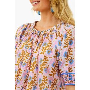 Brand new, never worn SZ Blockprints Tracy Top in Camel Essa pretty pink and blue Essa floral block print. Perfect condition.