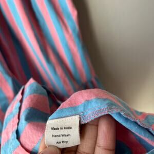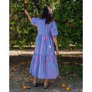 SZ Blockprints Gaia Pink Blue Striped Puff Sleeve Tiered Maxi Dress Size Small
