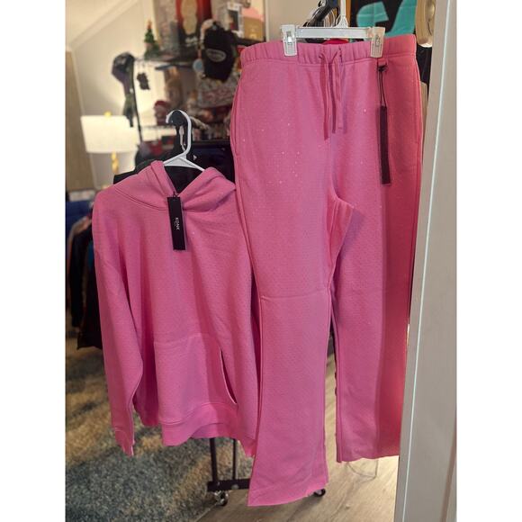 SZ L - Pink KDNK Hoodie & Sweatpants w/ Rhinestones - NWT