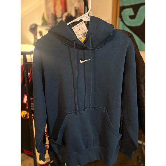 Get cozy in this stylish women's Nike hoodie! This dark blue hoodie is a size small and in excellent condition. Perfect for workouts, casual outings, or lounging at home. Don't miss out on this wardrobe staple!