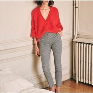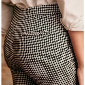 SÉZANE Clara Houndstooth Print High Rise 7/8 Trousers, Black/Ecru, FR40/US8