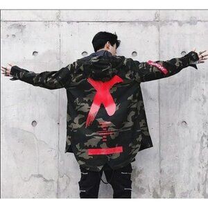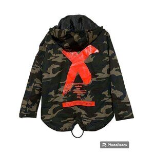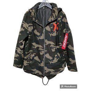 SZS Hooded Camo Jacket XL Canvas Oversized Gorpcore Graphic Print Spellout