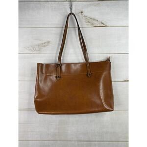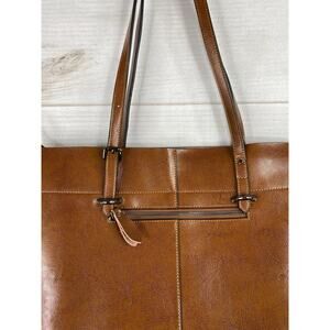 S-Zone Leather Zip Tote Shoulder Bag Large Distressed Cognac Brown Double Straps
