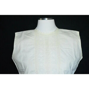 SaKa Ivory Floral Lace Eyelet Cut Out 1960's Linen Button Tank Top Size 12