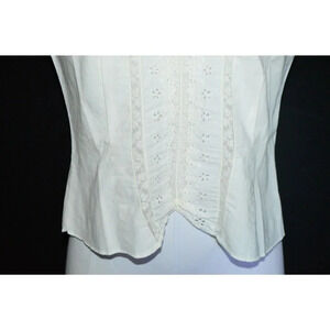 SaKa Ivory Floral Lace Eyelet Cut Out 1960's Poly Blend Button Tank Top Size 12