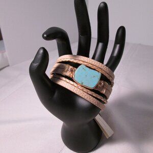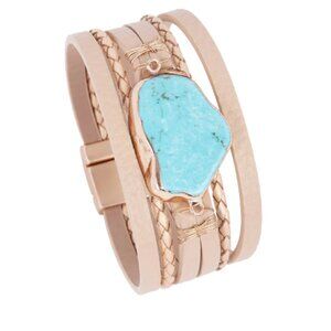 Saachi Braided Turquoise Bracelet-Beige BOHO Chic New