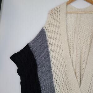 Saachi Kimono Cardigan Sz OS Black Gray Ivory Acrylic Open Front Boho Colorblock
