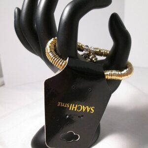 saachi bracelet, pea pod bracelet, gold stretch bracelet, coil stretch bracelet, crystal charm bracelet, faceted teardrop bracelet, gold tone bracelet, women’s stretch bracelet, designer fashion bracelet, charm stretch bracelet, elegant bracelet, statement bracelet, evening jewelry, beaded charm bracelet, lightweight bracelet, everyday bracelet, gift for her