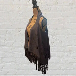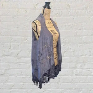 Saachi Vegan Suede Laser Cut Fringe Vest - Gray