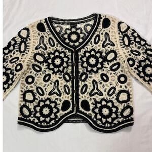 Saachi Womens Medium Floral Lace Crochet Cardigan Eyelet Dainty Grandma Core