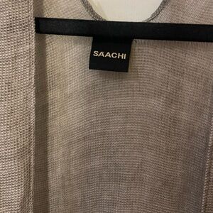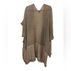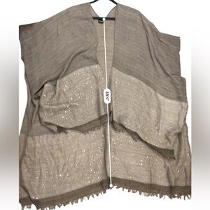 Saachi brand flowy longer length kimono wrap with raw edges and sequin details in earthy colors. Perfect for adding extra style without heavy layers. Excellent used condition