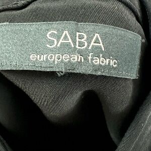 Chic black midi dress by Saba. Sleeveless design with a high neckline. Perfect for versatile styling. Two top buttons are snap then 3 hidden buttons. PTP 18”.