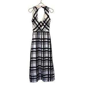 Saba California Empire Waist Maxi Dress Mod Vintage 60s 70s Black and White SM