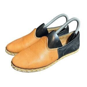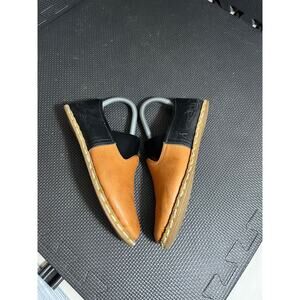 Stylish Sabah mules. Tan leather front. Black leather back. Comfortable and chic. Well-made. Tons of life left. They are just too small for me after pregnancy.