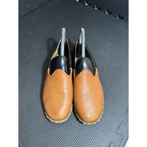 Sabah Tan Black Mules 36 6 6.5 leather slip on slides leather traditional flats