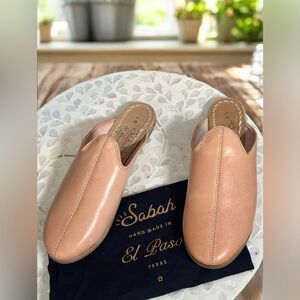 Sabah $235 El Paso Babas Undyed Leather Handmade in USA Slip On Slides Mules