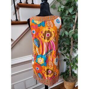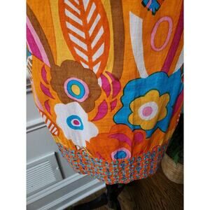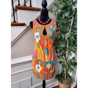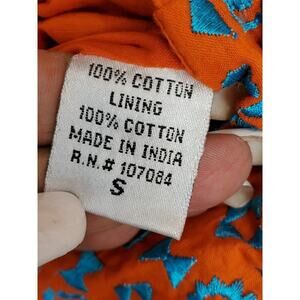 Sabby Anand Women's Orange Cotton Round Neck Sleeveless Knee Length Dress S