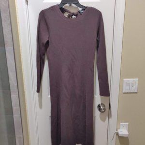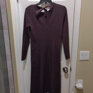 Sabie Brown Long-Sleeve Knit Dress, Size M. Thick and ribbed, with a tie in the back. Good condition.