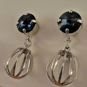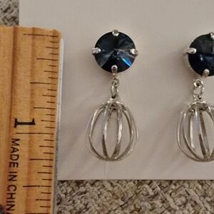 #Sabika Bermuda Blue Manhattan Crystal Silver Bird Cage Drop Earrings 1.25" long