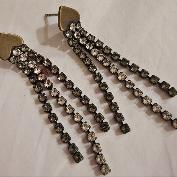 Sabika Black Diamond & Clear Tiara Crystals Silver Heart Dangle Earrings 2.25"