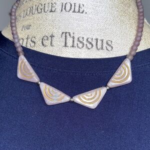 Chic necklace with purple beads and gold geometric accents. Reversible for a different look! Perfect for stylish ensembles.