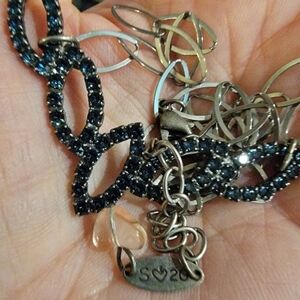 Rhodium Silver setting. Pendant approx 2" long.