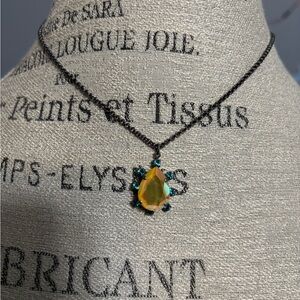 Charming necklace with a yellow teardrop pendant. Accented by blue stones. Perfect for any occasion.