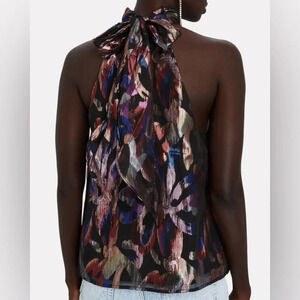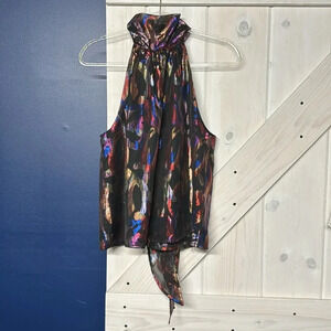 Sabina Musayev Alessandra Metallic Organza High Neck Top XS
