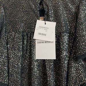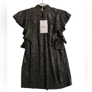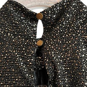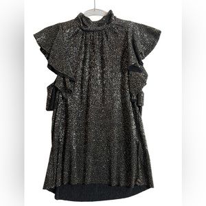 Sabina Musayev Black Ruffle Shoulder High Neck Diamond Shimmer Gold Top Size XS