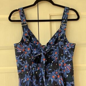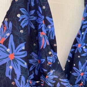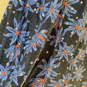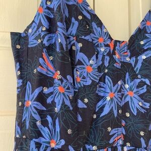 Beautiful dress with no flaws. Bustier style top with adjustable straps. Flowy pleated midi style skirt. Gorgeous floral print with metallic silver accents.