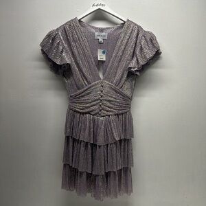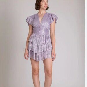 Sabina Musayev Devon Dress Mini Short Sleeve Metallic Lilac Purple New Size XS