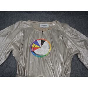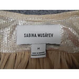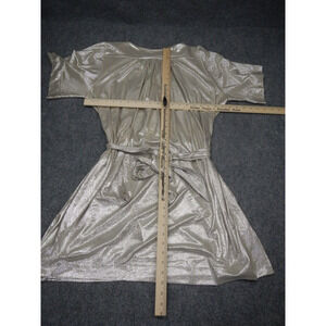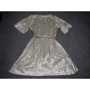 Sabina Musayev Dress Women's Medium Beige & Silver Metallic Belted Short Sleeve