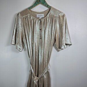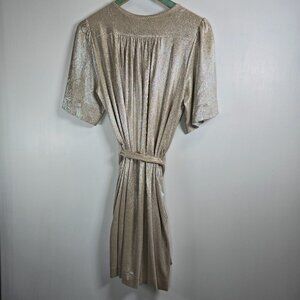 Sabina Musayev Gold Metallic Shimmer Foil O/S Belted Button-up Dress, M, NWOT