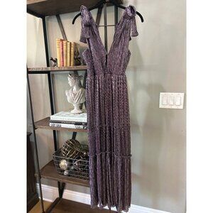 Sabina Musayev Helena Tiered Plisse Maxi Dress Multicolor Purple Womens Size XS