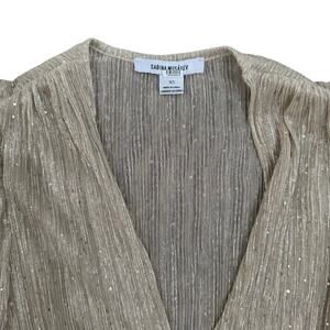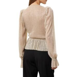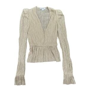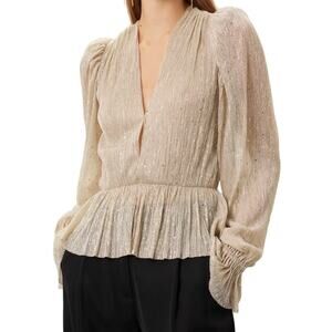 Sabina Musayev Liya Deep V Long Sleeve Top in Gold, Size XS