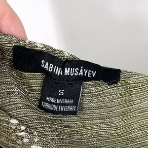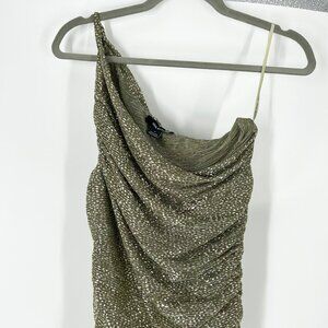Sabina Musayev Melissa Green Metallic Ruched One Shoulder Maxi Dress