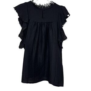 Sabina Musayev Melody Shirt Womens Large Black Ruffle Flutter Sleeve Lace Boho
