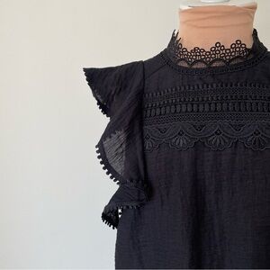 Sabina Musayev Melody Top Black Guipure Lace Romantic Mock Neck Blouse Sz S NWT