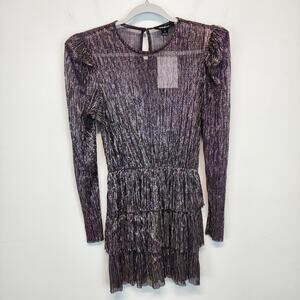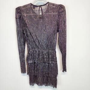 Sabina Musayev Monique Metallic Mini Dress Size M Purple Tiered Sheer Couture New Years Party Dress