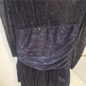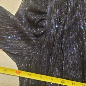 Elegant navy mini dress. Features long sleeves and layered skirt. Perfect for evening wear.