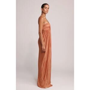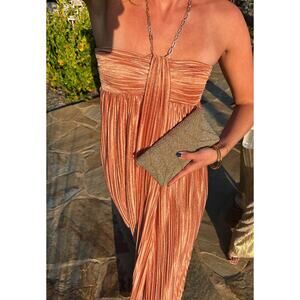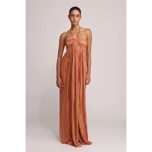 Floral embossed pleated knit halter maxi dress by Sabina Musayev.