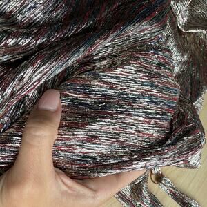 This metallic maxi dress shimmers beautifully, making it an ideal choice for cocktail parties, weddings, formal events, black tie galas and other special occasions. The gold fabric with subtle multicolor detail adds the right amount of sparkle for evening wear or festive celebrations. Whether styled for a wedding guest look, a holiday event, or a night out, this dress stands out for its glamorous yet wearable design.