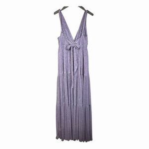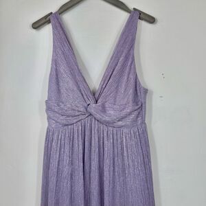 Purple metallic chiffon (100% Polyester). A-line. Sleeveless. V-neck.