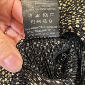 Metallic gold foil and black Roxie mini skirt by Sabina Musayev. Brand new with tags. This gorgeous skirt features ruched gathers along the side seams. Perfect for a party, special event, or New Year's! Waist across the top measures approx. 13 inches. Length of the skirt measures approx. 19 inches.