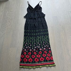 Sabina Musayev SELINA black floral pleated maxi dress.