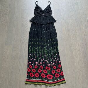 Sabina Musayev Selina Black Floral Pleated Peplum Cutout Maxi Dress - MEDIUM