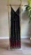 Black floral print (100% Polyester). Cocktail dress. V-neck. Back button closure.