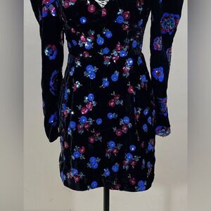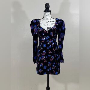 Sabina Musayev Sequin Embellished Velvet Puff Shoulder Dress size M
