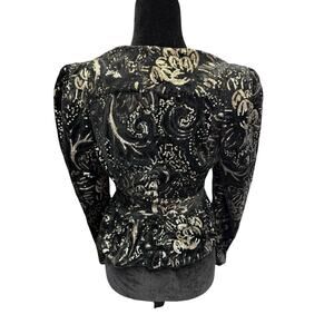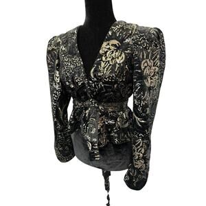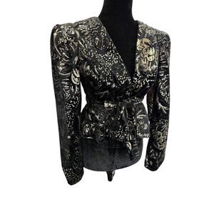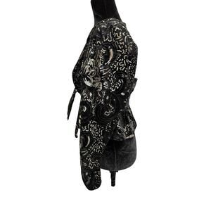 Sabina Musayev Sequin Velvet Wrap Blazer Top Black Gold Tie Waist XS/S Party
